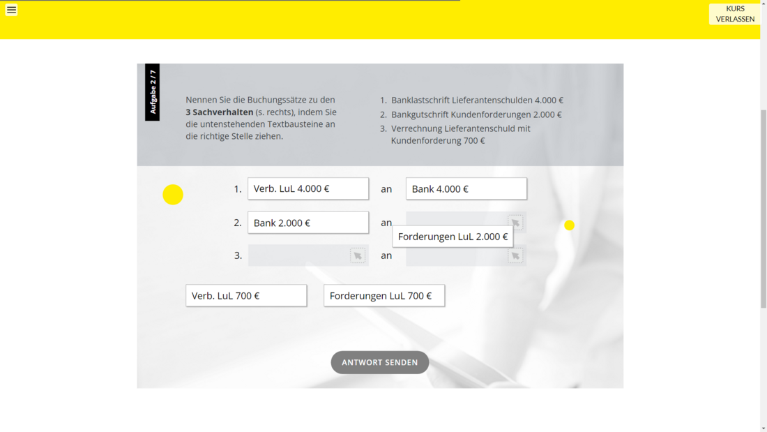 Nach Abschluss dieses Kurses haben die Teilnehmenden die Grundlagen der Buchführung und Bilanzierung von Grund auf verstanden. Damit ist das Fundament für einen fachlich sicheren Einstieg in die Praxis gelegt.