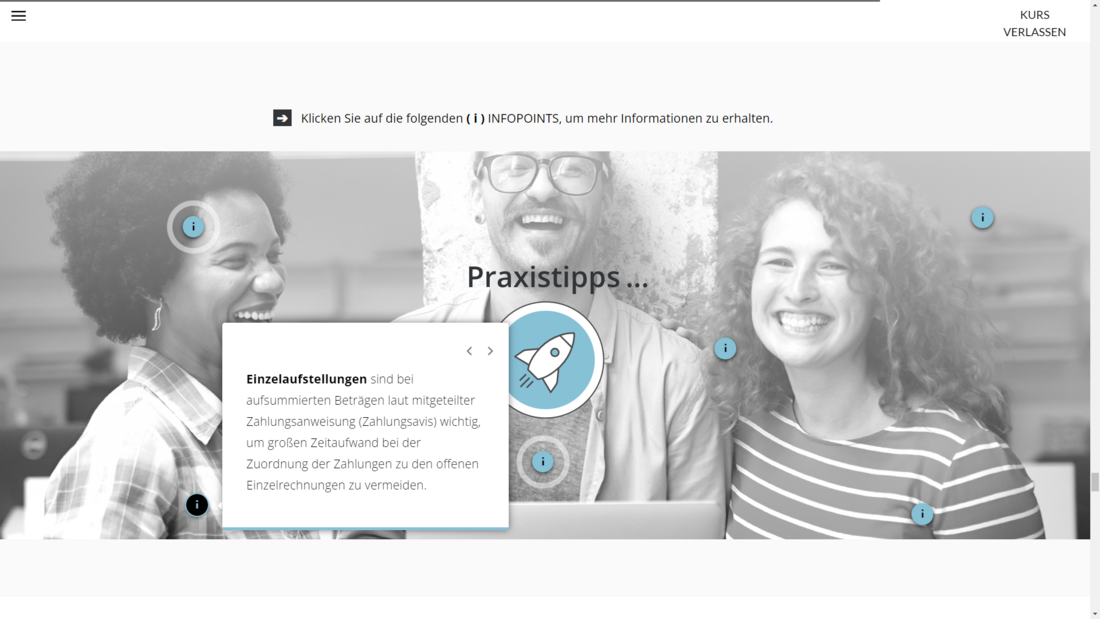Erleben Sie ein multimediales Lernerlebnis: Sie lernen mit Videos, interaktiven Übungen, Texten, Praxisbeispielen und Wissenstests. So eignen Sie sich Fachwissen abwechslungsreich, praxisnah und nachhaltig an – flexibel und jederzeit online verfügbar.