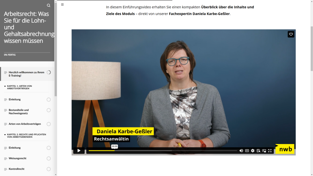 Erleben Sie ein multimediales Lernerlebnis: Sie lernen mit Videos, interaktiven Übungen, Texten, Praxisbeispielen und Wissenstests. So eignen Sie sich Fachwissen abwechslungsreich, praxisnah und nachhaltig an – flexibel und jederzeit online verfügbar.