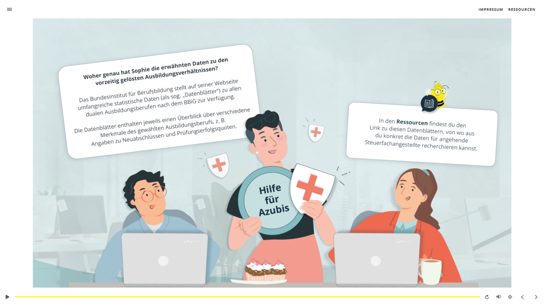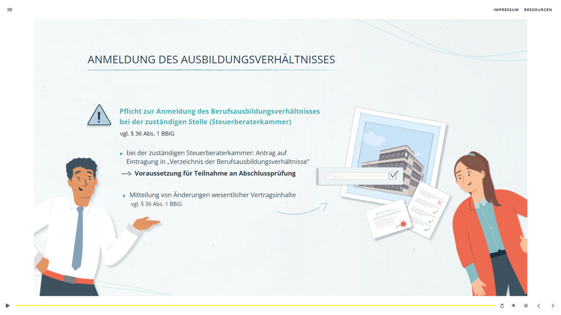 In diesem Online-Kurs – bestehend aus 5 Modulen – geht es um wesentliche Themen aus dem ersten Ausbildungsjahr für Azubis zum oder zur Steuerfachangestellten. Der Kurs hilft Azubis dabei, sich zu Beginn der Ausbildung zurechtzufinden und baut ein solides inhaltliches Fundament auf. Der Fokus des E-Trainings liegt dabei gezielt auf der Berufsausbildung in der Steuerkanzlei als Ausbildungsstätte. Das stärkt die Auszubildenden und entlastet gleichzeitig die Kanzleimitarbeitenden!