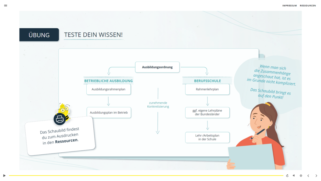 - Nach Abschluss dieses Kurses können Azubis die wichtigsten inhaltlichen und organisatorischen Rahmenbedingungen ihrer Berufsausbildung auf Basis der jeweiligen gesetzlichen Grundlage wiedergeben und kennen auch ihre eigene Rolle im Rahmen der Berufsausbildung.