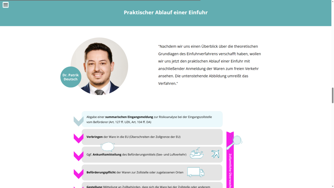 - Verständnis vom Ablauf der Ein- und Ausfuhr in der Praxis