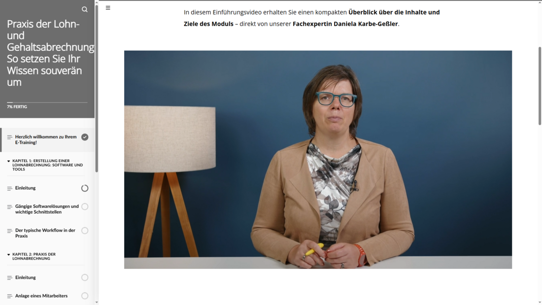 Erleben Sie ein multimediales Lernerlebnis: Sie lernen mit Videos, interaktiven Übungen, Texten, Praxisbeispielen und Wissenstests. So eignen Sie sich Fachwissen abwechslungsreich, praxisnah und nachhaltig an – flexibel und jederzeit online verfügbar.
